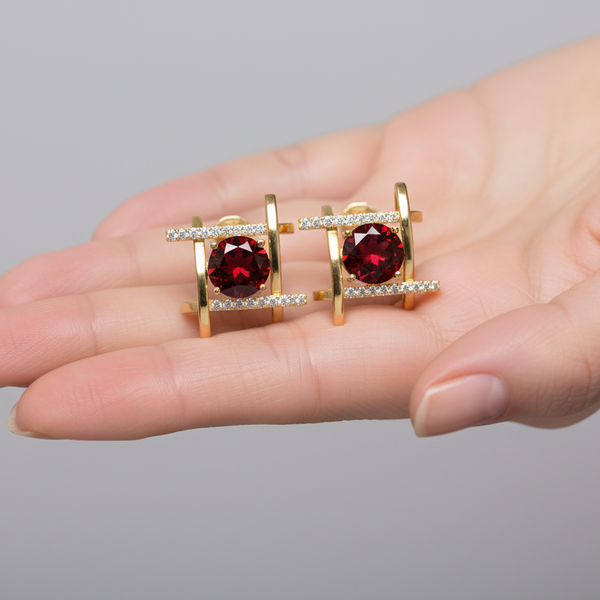 These 14K Solid Gold Square Ruby Diamond Earrings are the perfect blend of classic and modern. The earrings feature a square-shaped design with a deep red rubies and dazzling round diamonds set in 14K yellow gold. The intricate detailing of the earrings makes them a timeless piece of jewelry that you can wear for any occasion. The earrings are sure to turn heads and be a showstopper wherever you go.