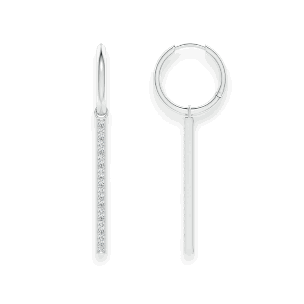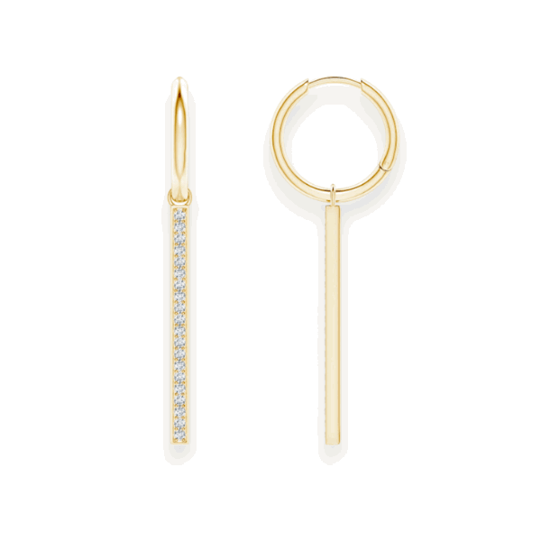 These 14K solid gold vertical bar diamond earrings are the perfect accessory for any special occasion. The simple yet elegant design features a vertical bar setting with sparkling round brilliant cut diamonds set each earring. The bar is made from a high quality 14K gold, giving the earrings a luxurious feel and look.