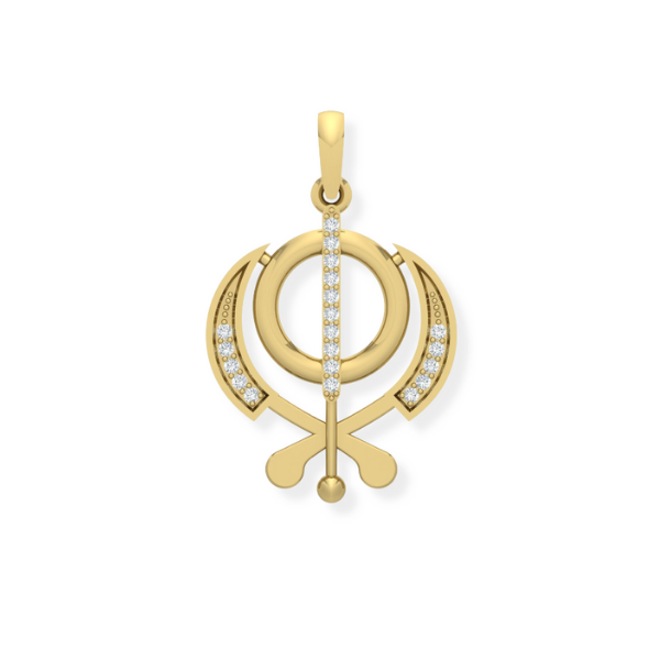 14K solid gold religious Khanda diamond pendant is a timeless piece that will add an elegant touch to any outfit. Crafted with care and precision, this beautiful Khanda pendant encrusted with round cut diamonds that sparkle brilliantly in any light.