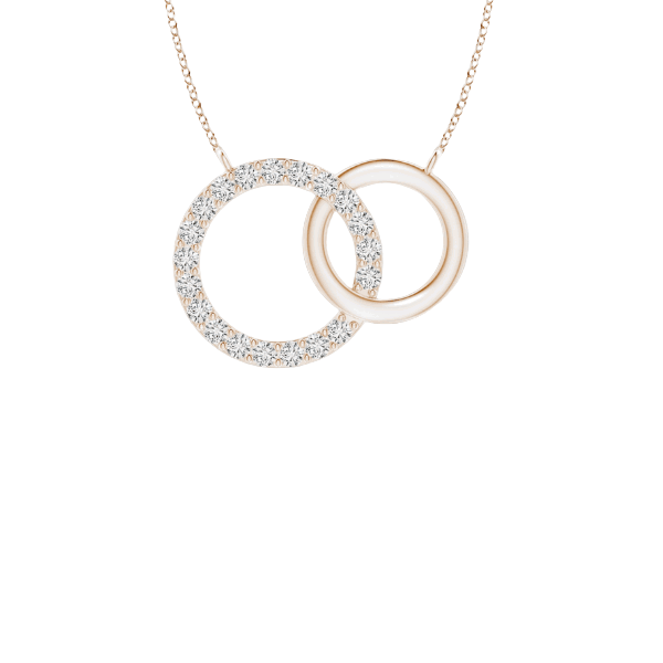 This elegant 14K solid gold two circle diamond necklace is the perfect addition to any jewelry collection. This necklace is crafted from 14K solid gold and features two circles of diamonds that shimmer and sparkle in the light. The two circles are connected by a delicate chain, making this necklace a timeless piece that can be worn for any occasion.