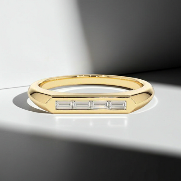 This stunning ring features 14K Solid Gold and a dazzling baguette diamond. It’s the perfect ring for someone who loves classic style with a touch of sparkle. The band is simple and elegant. This ring is sure to become a treasured part of your jewelry collection.