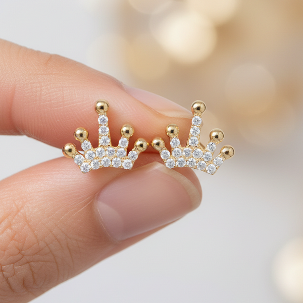 These 14K solid gold crown unique design diamond earrings are an exquisite accessory for any occasion. With a unique crown shape, these earrings are sure to make a statement. Crafted from 14K solid gold and set with sparkling diamonds, these earrings are beautiful. The combination of the solid gold and the diamonds create a stunning look that is perfect for adding a touch of elegance to any outfit. These earrings are a must-have addition to any jewelry collection.