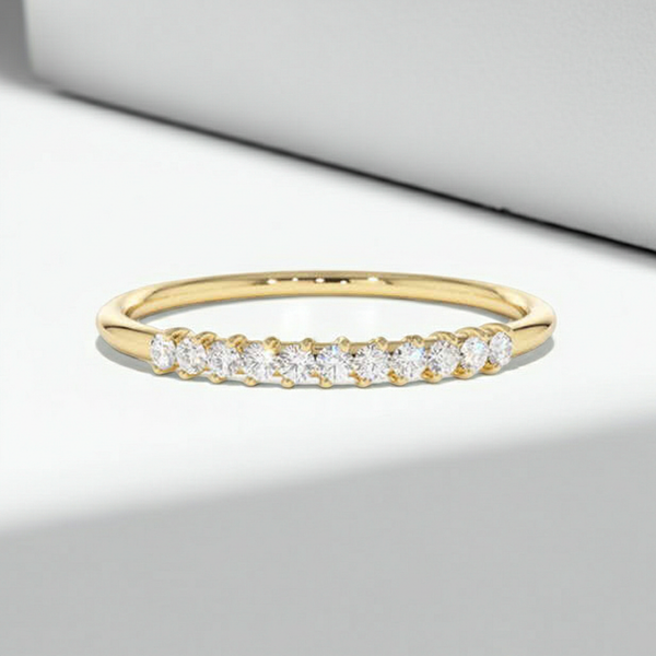 Make a stunning statement with this gorgeous 14K Solid Gold 11 diamond wedding ring. Featuring a sleek and modern band, this ring is adorned with 11 dazzling diamonds. The perfect way to add a touch of sparkle to your big day, this ring is a must-have for any bride-to-be.