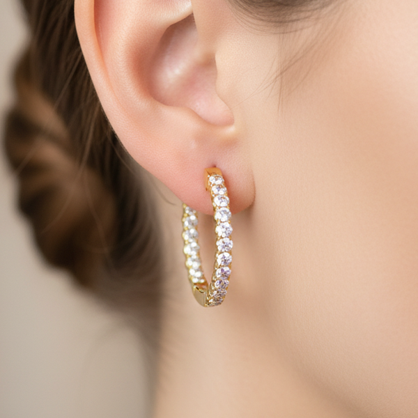 The unique in-out design allows the earrings to be worn inside or outside the earlobe, giving you endless styling options. Whether you prefer a classic or edgy look, these earrings seamlessly adapt to your personal style. Crafted from the finest 14K solid gold, these earrings are both durable and luxurious. The gold's rich luster complements the diamonds beautifully, adding a touch of opulence to your ensemble.