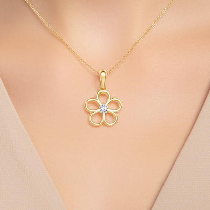 This exquisite 14K Solid Gold Flower Single Diamond Pendant is the perfect accessory for any special occasion. Crafted from 14K solid gold with an elegant flower design, this pendant features a single sparkling diamond in the center.