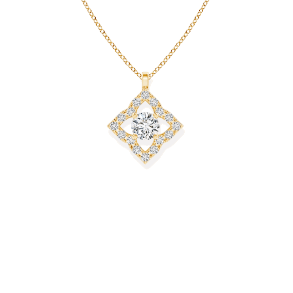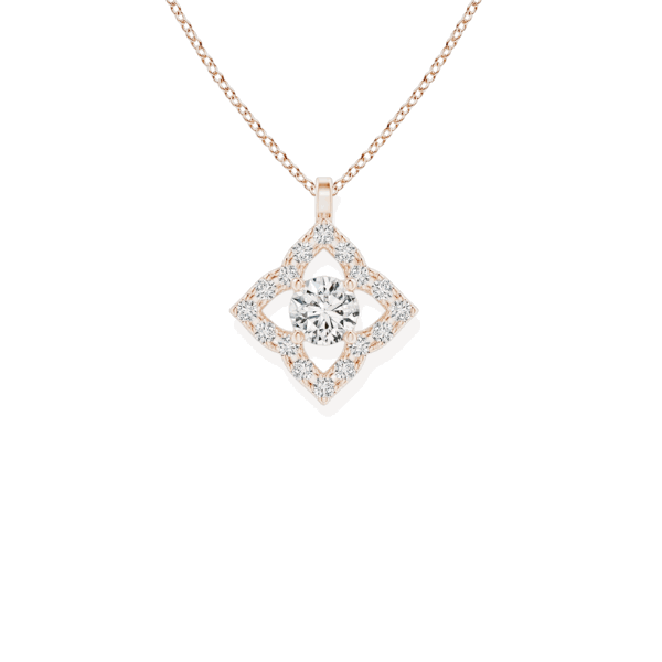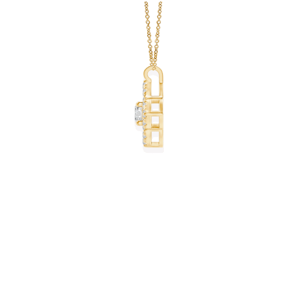 The pendant features a sparkling round-cut diamond set in a classic four-prong setting. The pendant is polished to a high shine, giving it a timeless elegance and creating a look that will never go out of style. The perfect gift for any special occasion, this pendant is sure to become a treasured heirloom.