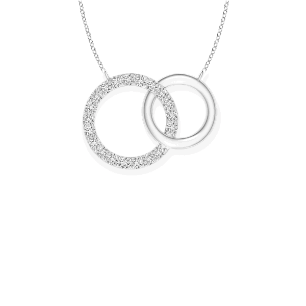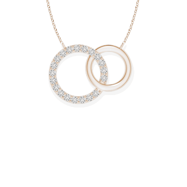 This elegant 14K solid gold two circle diamond necklace is the perfect addition to any jewelry collection. This necklace is crafted from 14K solid gold and features two circles of diamonds that shimmer and sparkle in the light. The two circles are connected by a delicate chain, making this necklace a timeless piece that can be worn for any occasion.