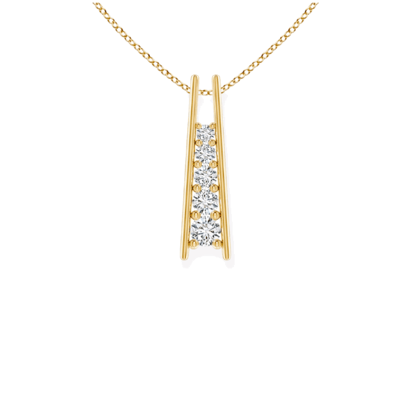 This 14K Solid Gold Vertical Prong Settings Diamond Pendant is the perfect addition to any jewelry collection. Crafted from solid 14K gold, this beautiful pendant features a vertical prong setting that securely holds a round-cut diamond in its center.