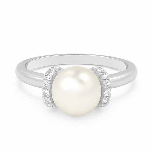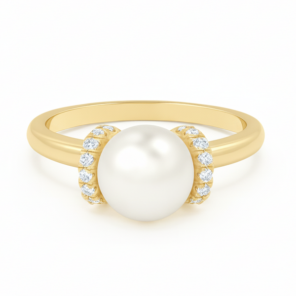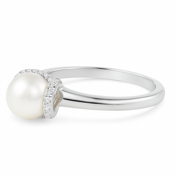 A stunning statement ring featuring a lustrous 9.00 mm white South Sea pearl as its centerpiece, set in 14K solid gold. The pearl's natural radiance is beautifully complemented by sparkling diamonds that frame and enhance its elegance. This timeless piece combines the organic beauty of premium South Sea pearls with the durability and prestige of solid gold, making it an ideal choice for special occasions or as a treasured everyday luxury. A sophisticated addition to any fine jewelry collection.