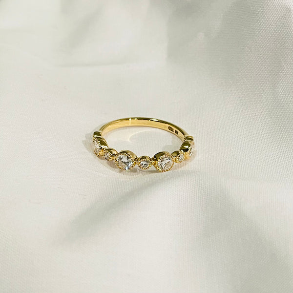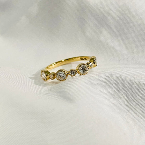 Indulge in the timeless elegance of our Antic Bezel 14K Solid Gold Diamond Wedding Ring Band. Handcrafted with 14K solid gold and adorned with sparkling diamonds, this exquisite band exudes luxury and sophistication. Perfect for any special occasion, this ring is sure to be treasured for a lifetime.