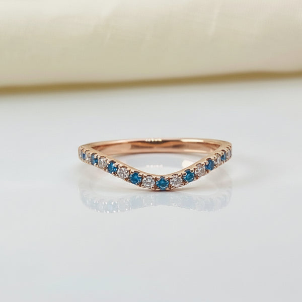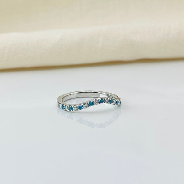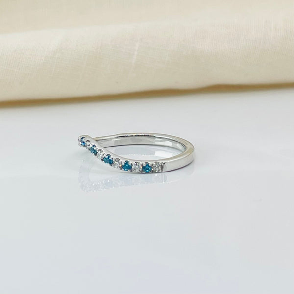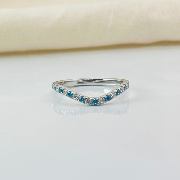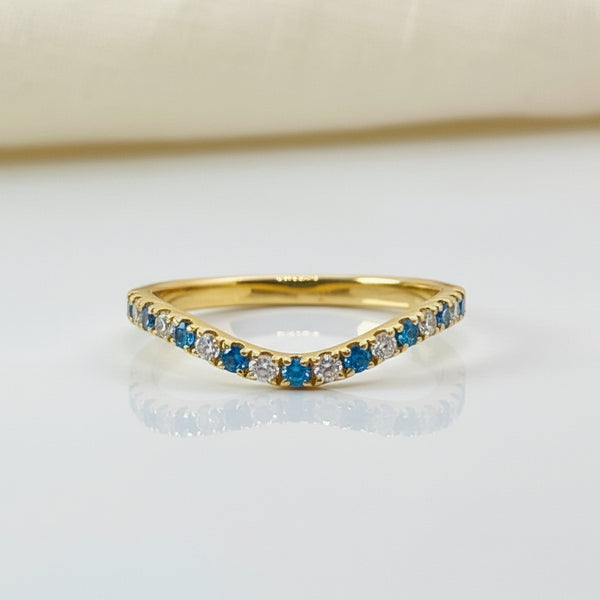 Celebrate March birthdays with this elegant curved pave ring band, featuring a stunning aquamarine stone set in 14K solid gold. Delicate diamond accents frame the center gemstone, creating a sophisticated sparkle that complements any engagement ring or stands beautifully on its own. The curved design ensures a comfortable fit alongside solitaire settings, while the timeless combination of aquamarine and diamonds offers both personal meaning and enduring style. Perfect for those seeking a distinctive birthstone ring with premium craftsmanship and lasting quality.