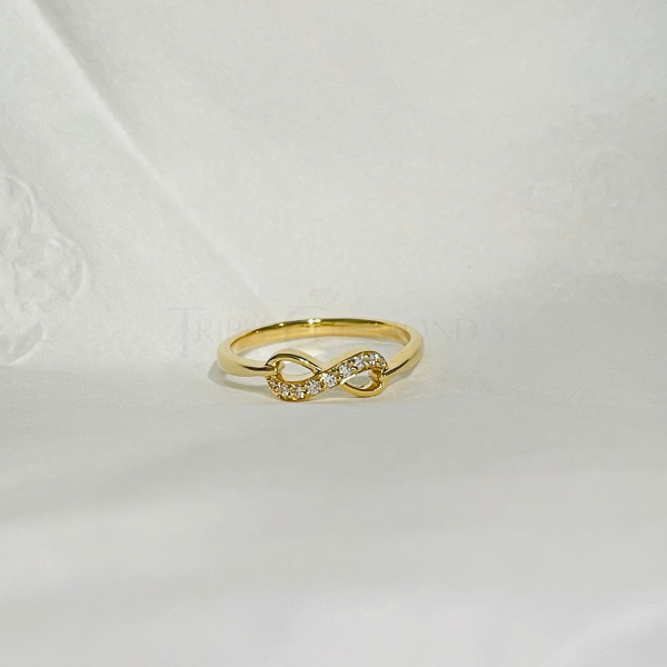 Crafted from 14K solid gold, this Infinity wedding band features a continuous row of precisely set diamonds, symbolizing eternal commitment. Its elegant design combines durability with timeless sophistication, making it an ideal choice for a meaningful and lasting expression of love. Perfect for everyday wear, this band balances impeccable craftsmanship with refined style.