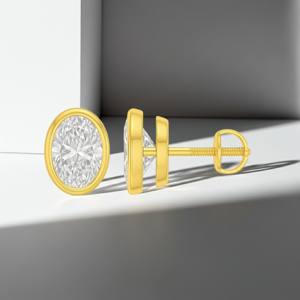 Make a bold statement with these striking oval cut diamond solitaire studs, set in a daring 14K solid gold bezel. Certified by IGI, each diamond radiates unmatched brilliance and clarity, designed to catch every eye. Perfect for those who aren’t afraid to shine, these earrings combine fearless style with timeless elegance.