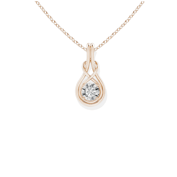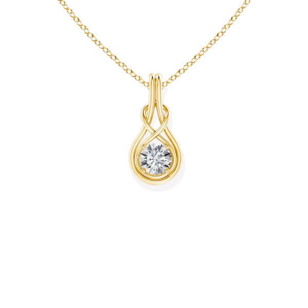 Featuring a petite loveknot design set with a single brilliant diamond in the middle, this pendant is sure to turn heads. The solid gold construction ensures long-term durability and the diamond adds a stunning sparkle to the piece.