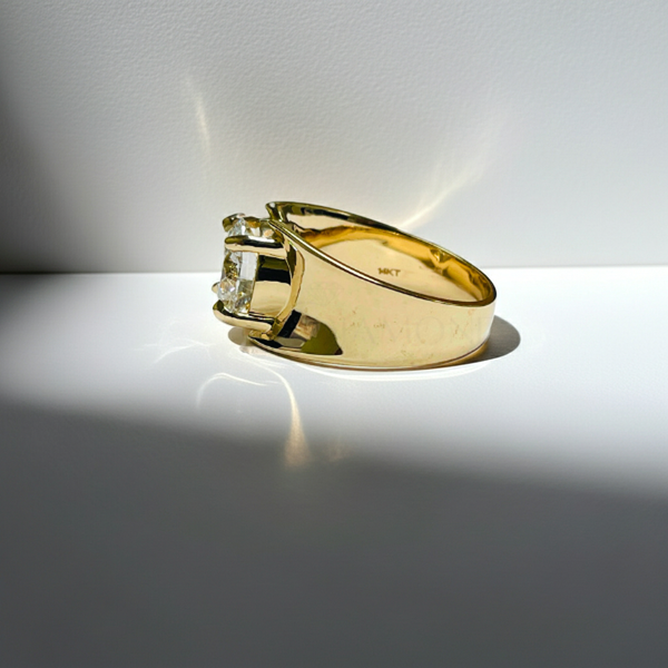 Experience the perfect blend of boldness and elegance with this 1 to 3 carat round cut diamond set in a broad band 14K solid gold solitaire engagement ring. The wider band emphasizes the diamond’s brilliance while offering a comfortable, confident fit. Designed to celebrate your unique love story, this ring promises lasting beauty and meaningful commitment.