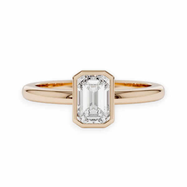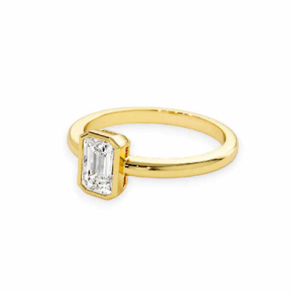 Always In Style 14k Solid Gold Bezel Setting Emerald Cut Diamond Ring