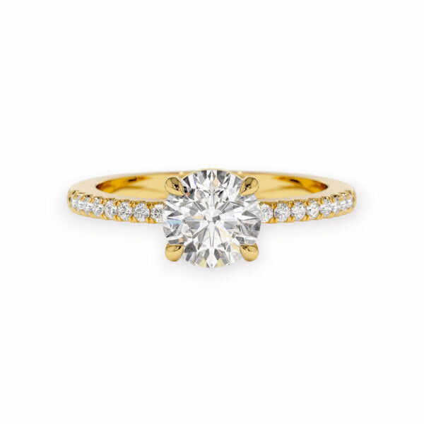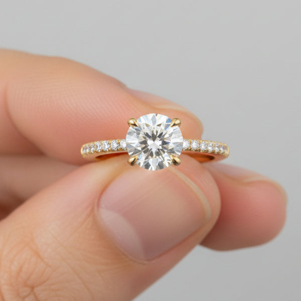 This dazzling 14K Solid Gold Round Cut Side Pave Style Diamond Ring is an exquisite piece of jewelry.