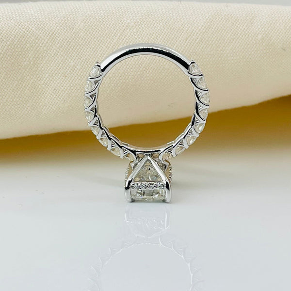 Elevate your engagement with this sophisticated radiant cut ring, featuring a stunning 3 to 5 carat center stone set in lustrous 14K solid gold. The curved side band design creates an elegant flow that complements the radiant's brilliant faceting, enhancing sparkle and light performance. Crafted for durability and timeless appeal, this piece balances contemporary styling with classic elegance—ideal for those seeking a distinctive yet refined symbol of commitment.
