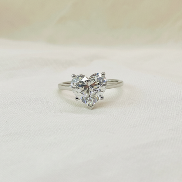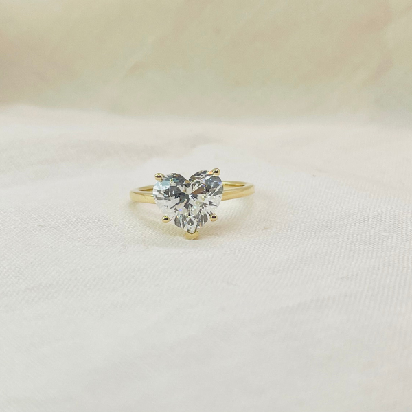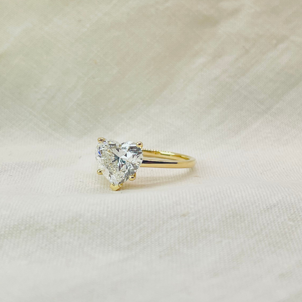 Make a bold statement with this striking heart-shaped solitaire that refuses to blend in. Anchored in 14K solid gold, this engagement ring puts your diamond front and center—no distractions, no compromise. The heart cut is a daring choice for those who want their love story told with confidence and flair. This isn't just jewelry; it's a declaration. Perfect for the person who knows exactly what they want and isn't afraid to wear their heart on their finger. Unapologetically romantic, undeniably powerful.